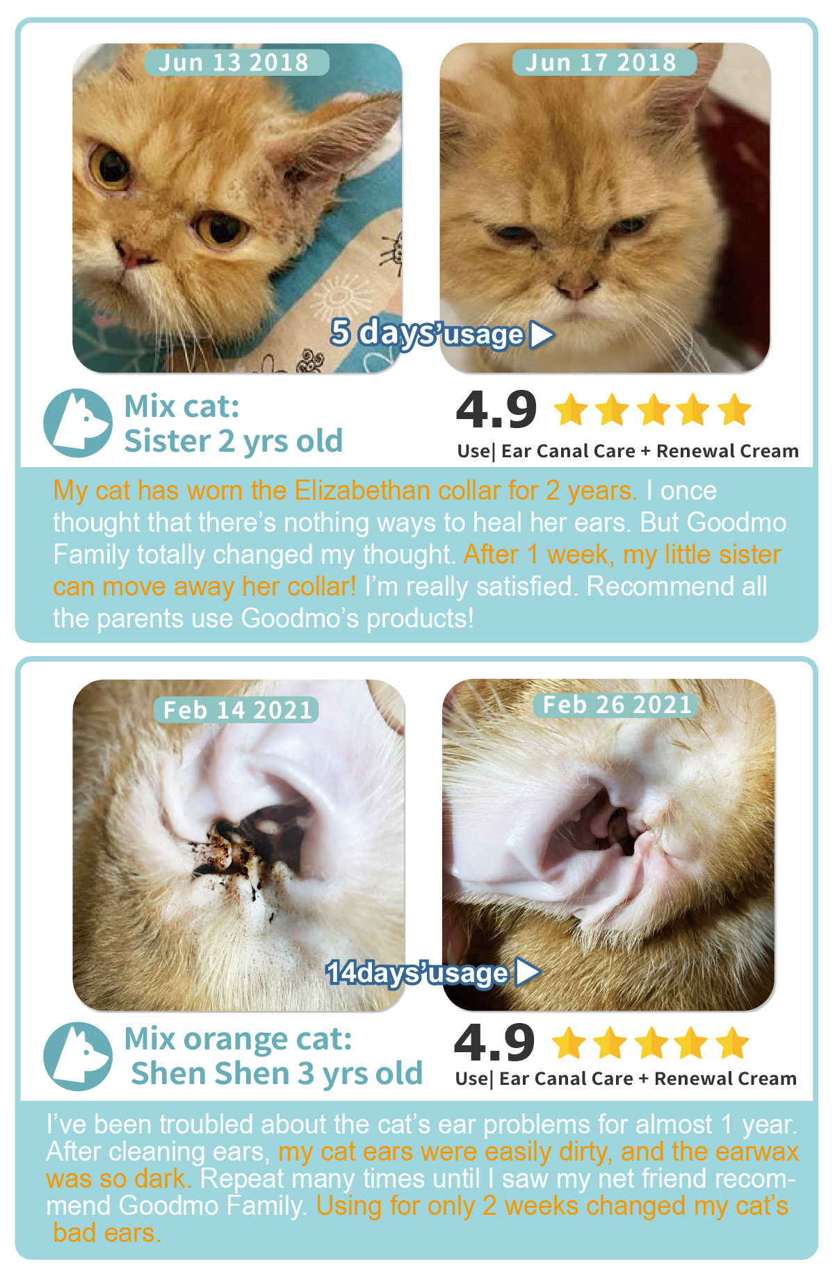 Please apply SSC-Renewal Pet Cream 3 times per day to speed up the recovery of ear canal.