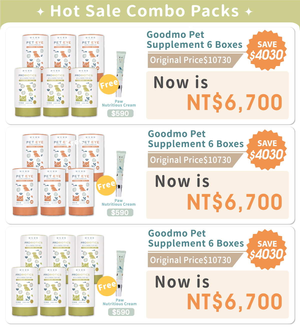 Goodmo Pet Supplement Series—Eye Complex +Probiotics(6 boxes) and get a Paw Nutritious Cream