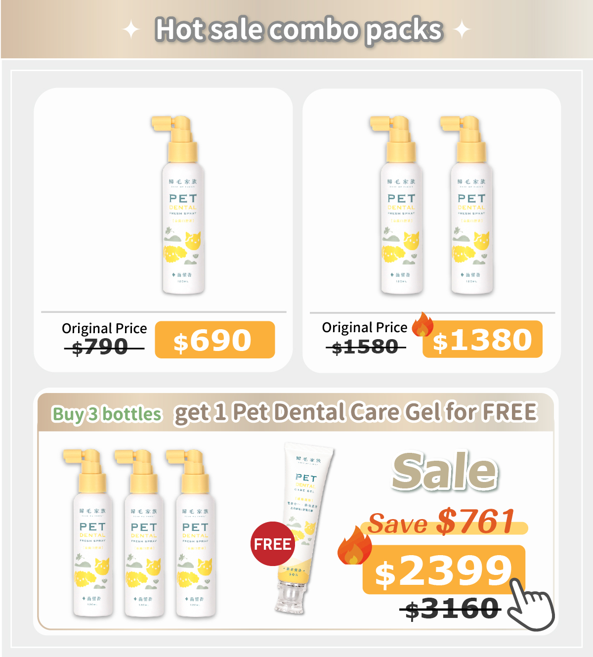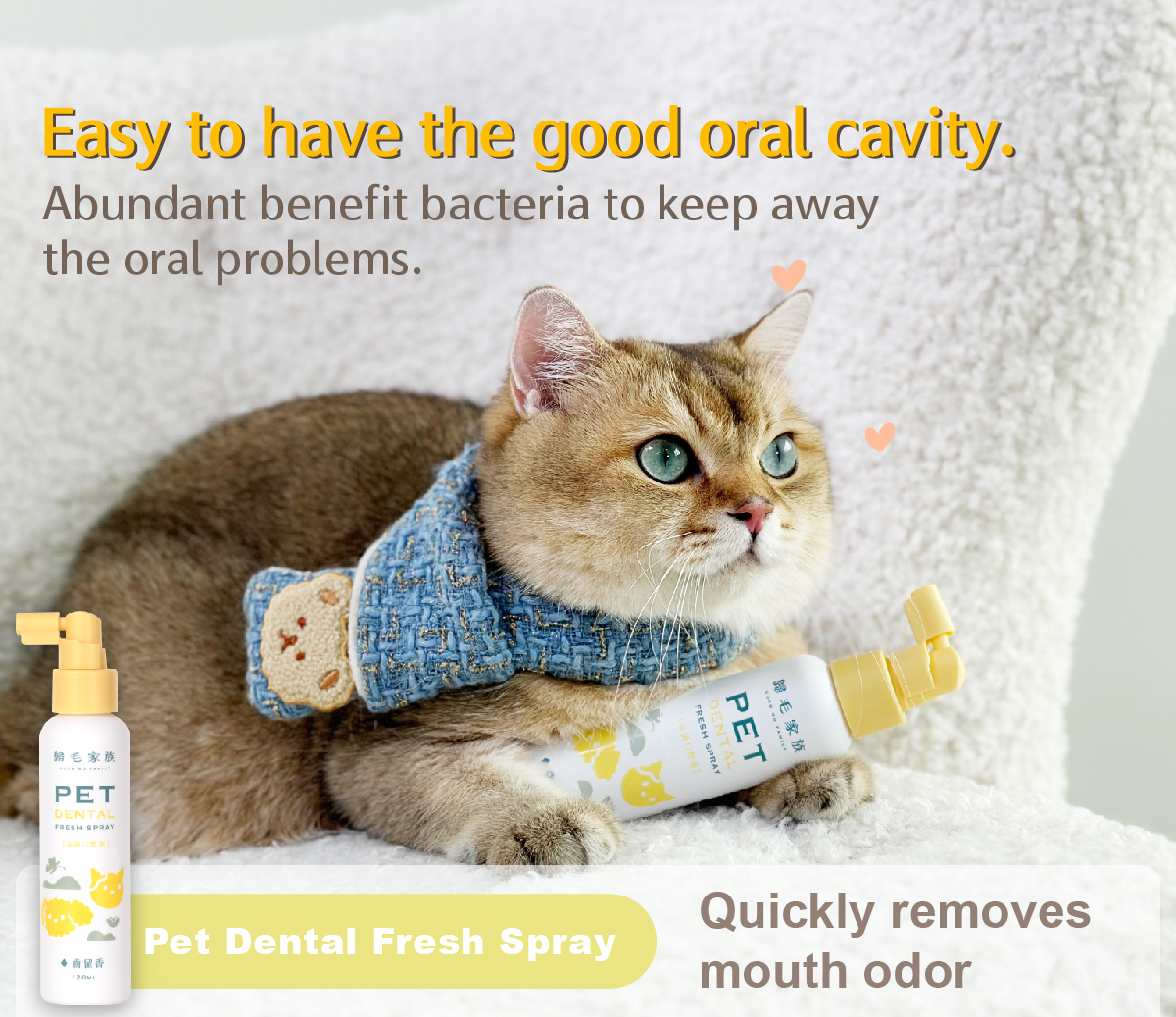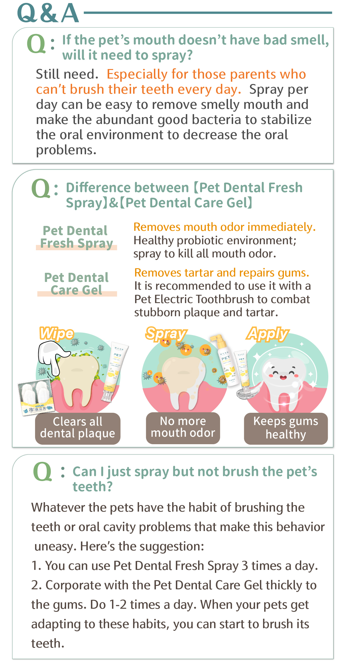 If thepets have already got the oral problems, please use this spray together with【Goodmo Family- Pet Dental Care Gel】.