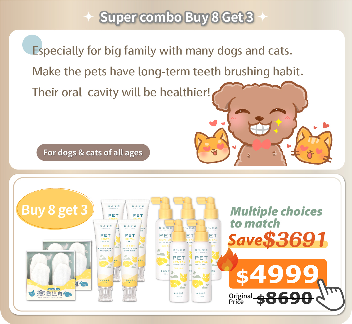 ✓ Aged 3 months or above, for daily oral care and maintenance of cats and dogs