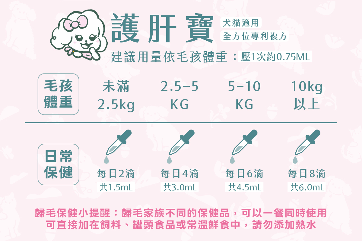 5–10kg,每日六滴(共4.5mL)